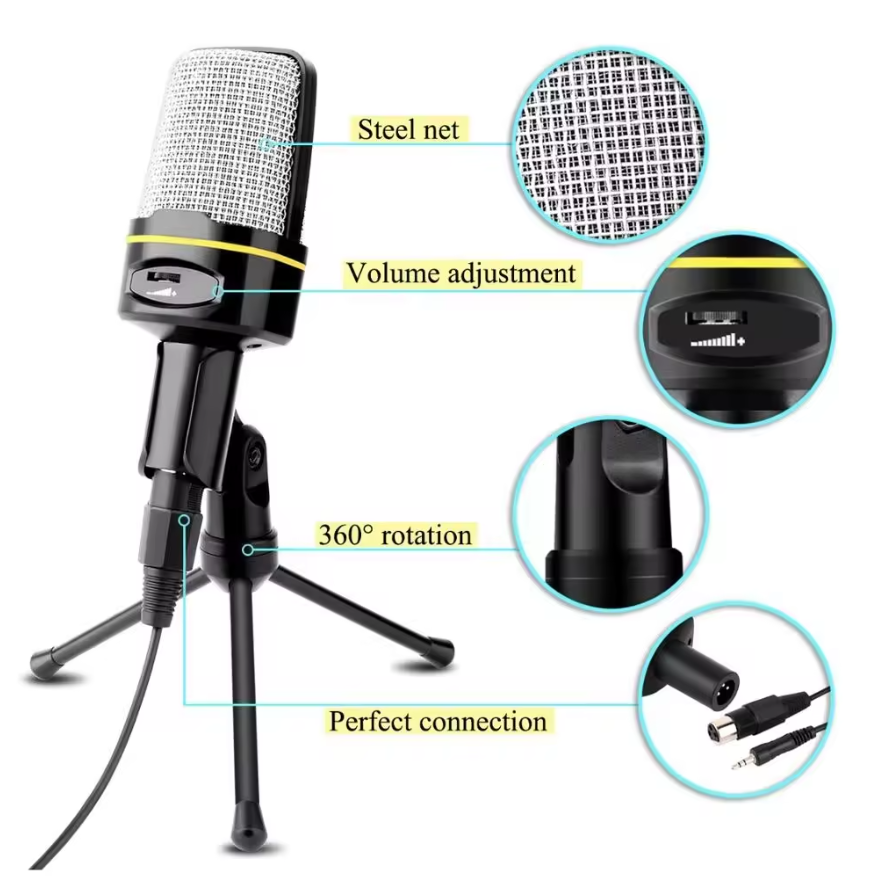 ไมโครโฟนคอนเดนเซอร์แบบมีสายขนาด3.5มม. สำหรับสตูดิโอมาพร้อมคอมพิวเตอร์ขาตั้งกล้องและการประชุมใช้งานได้อย่างมีน้ำหนักเบาแบบพกพา