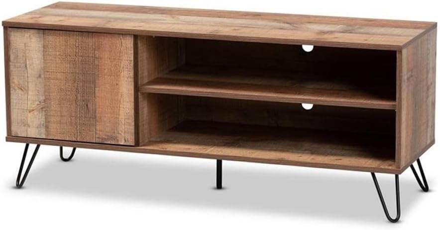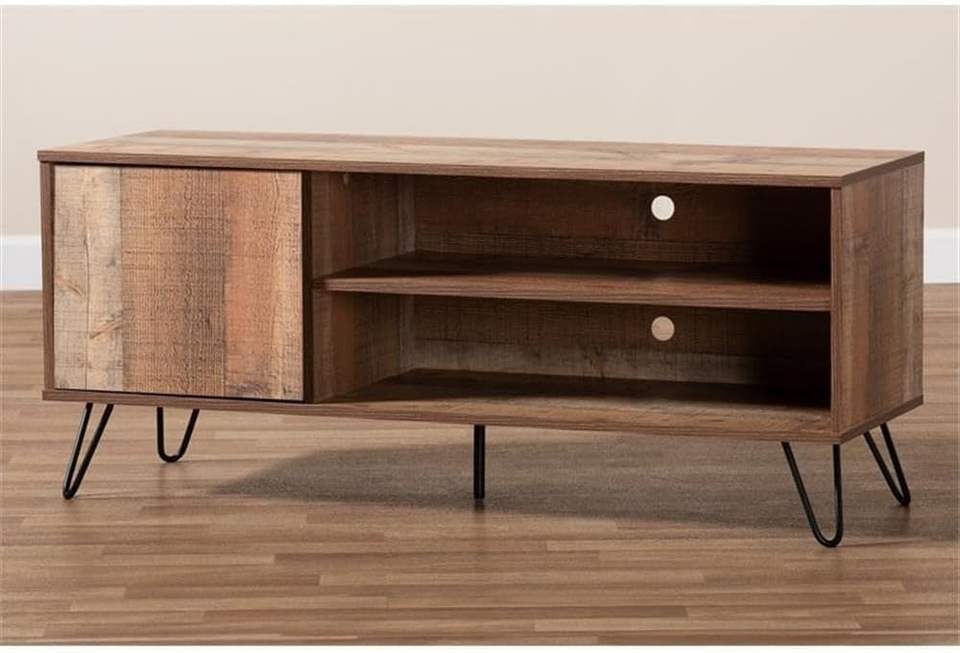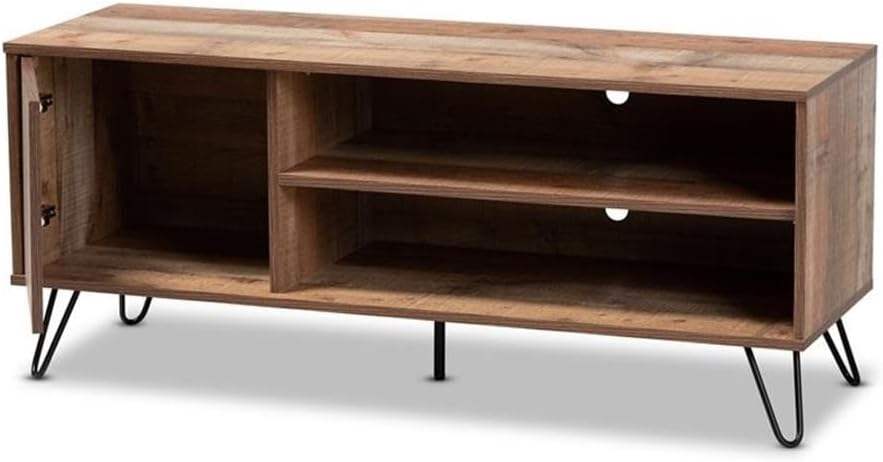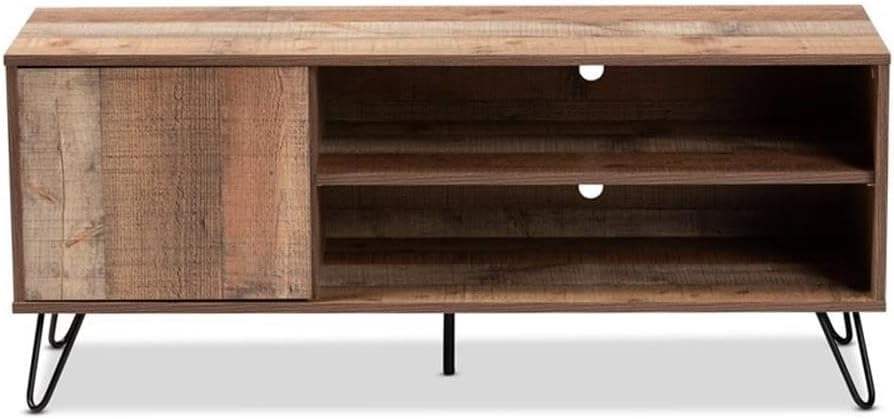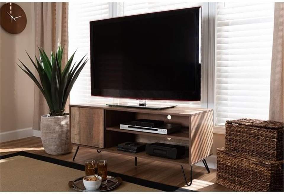 ขาตั้งทีวีไม้โอ๊คแบบชนบท1ประตูสำหรับสตูดิโอไม้โอ๊คสไตล์โมเดิร์นและร่วมสมัย