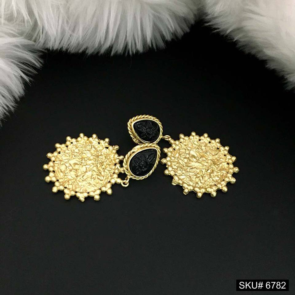 ต่างหูห้อยรูปเรขาคณิตสีทอง18K ที่สวยงามต่างหูแบบห้อยอัญมณีสีดำสไตล์วินเทจเครื่องประดับทองเหลืองสำหรับเป็นของขวัญ