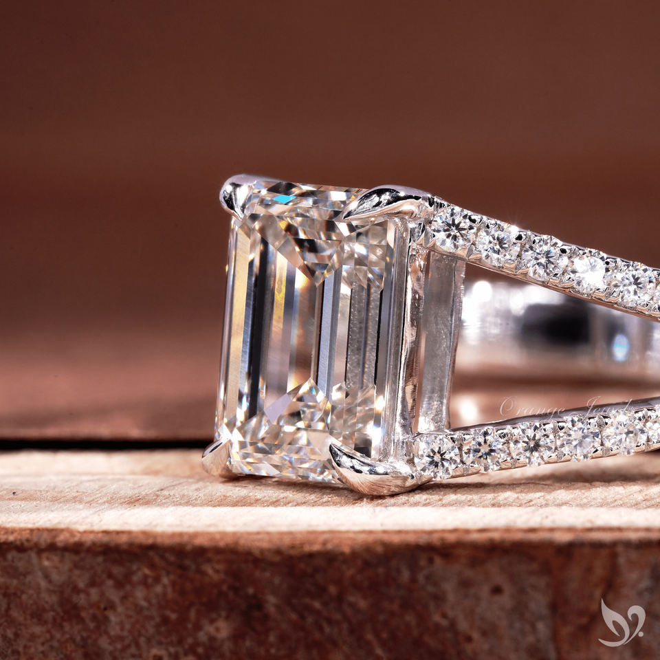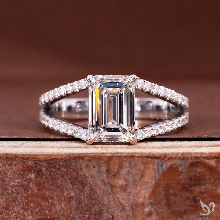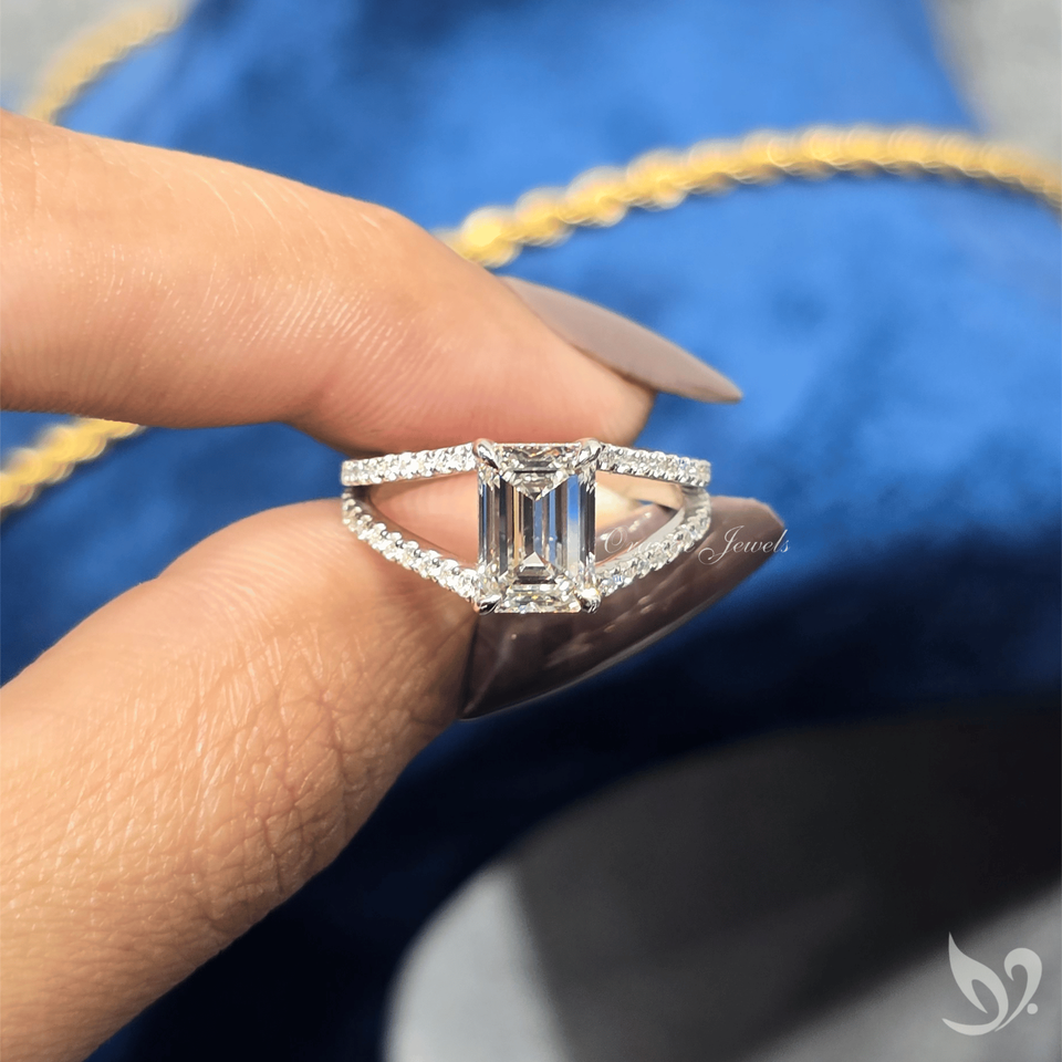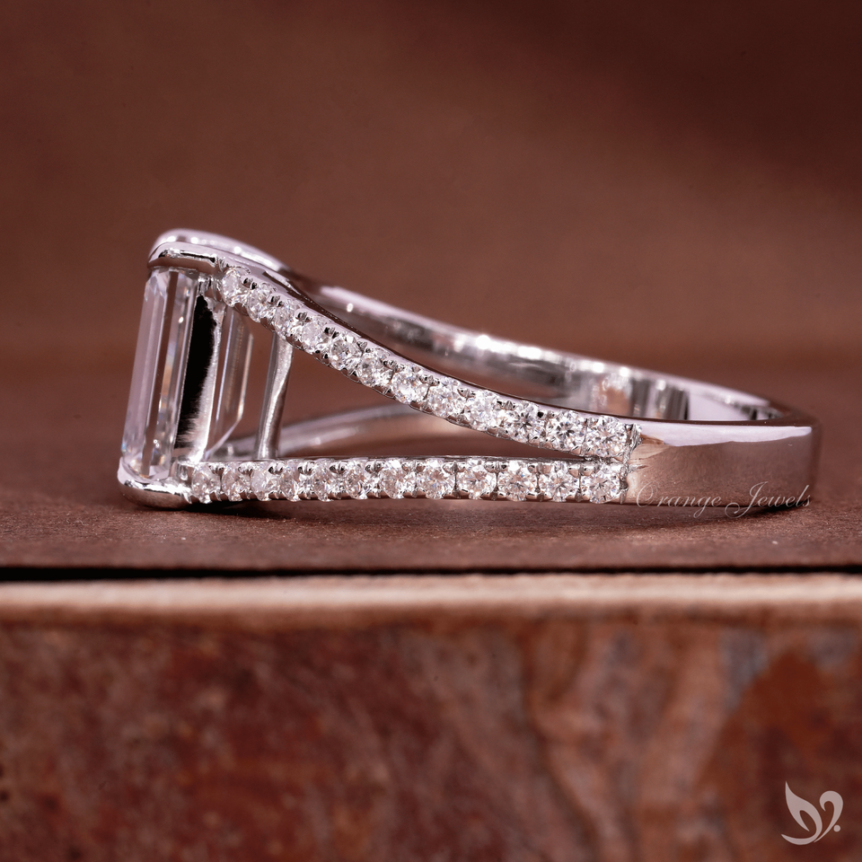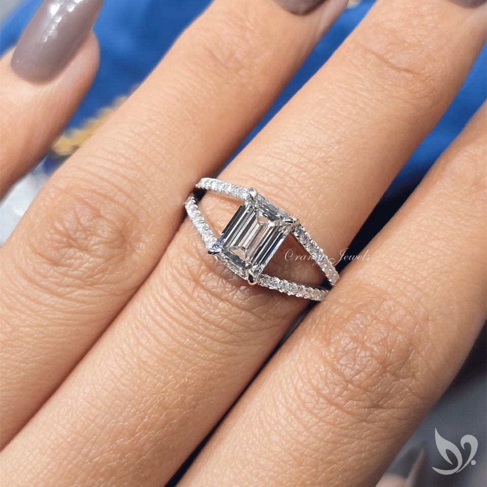 แหวนเพชรทรงเหลี่ยมมรกต 2 กะรัต สวยงาม ประดับเพชรแบบฝังเต็มตัวเรือน ทองคำขาว 10K ได้รับการรับรองจาก IGI แหวนสำหรับเจ้าสาว