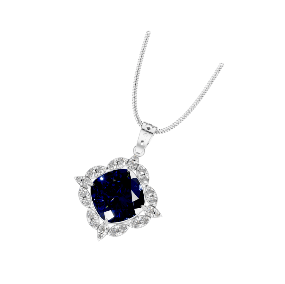 Style:Sapphire Gemstone Pendant with Natural Diamond Halo
