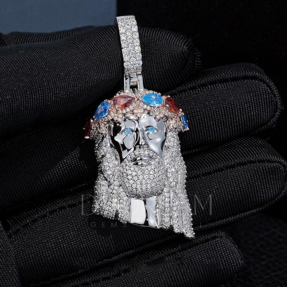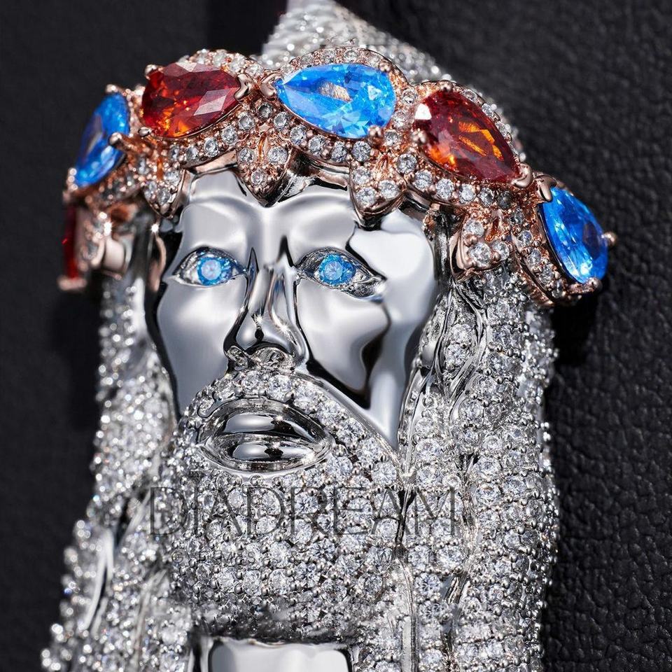จี้เงินรูปพระเยซูสี925สุดสวยสไตล์ฮิปฮอปแบบเย็นจี้ประดับมงกุฎเพชร