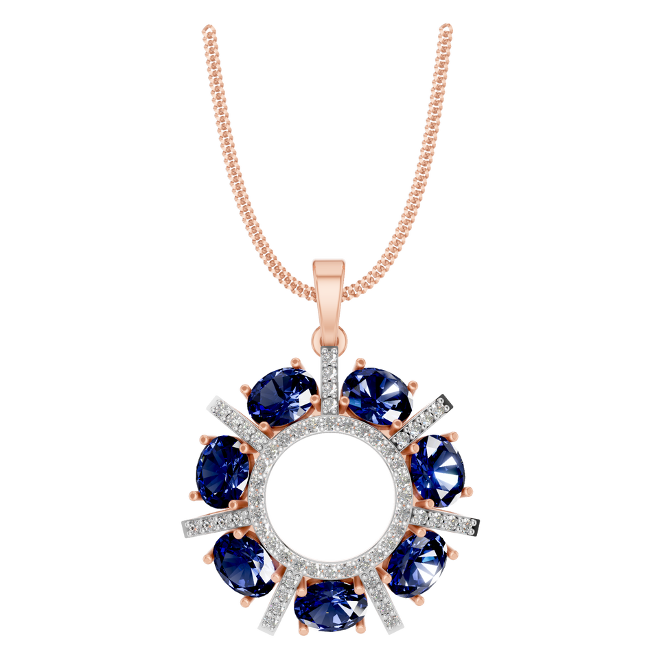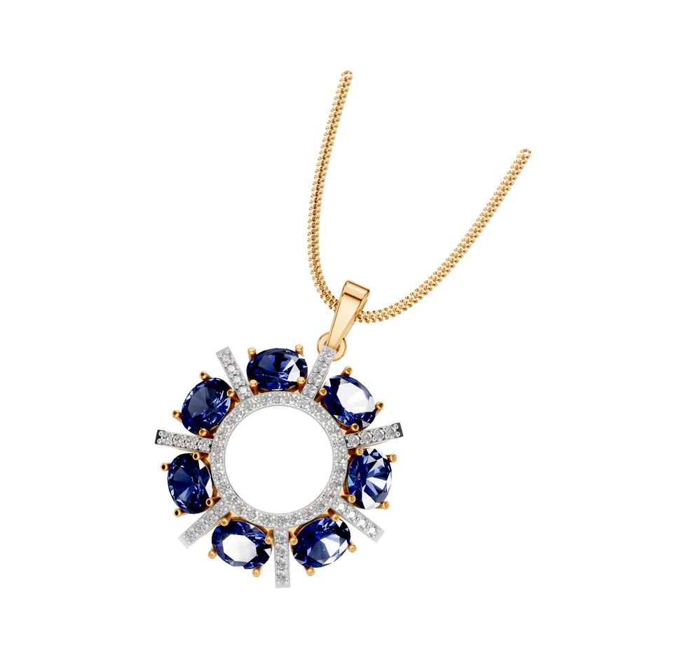 Exquisite Natural Sapphire Gemstone Circle Pendant Necklace