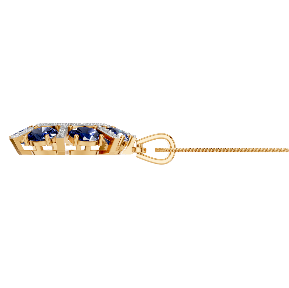 สร้อยคอจี้เพชรรูปวงแหวนพลอยสีฟ้าและเพชร14K 18K ประดับทองสีขาว