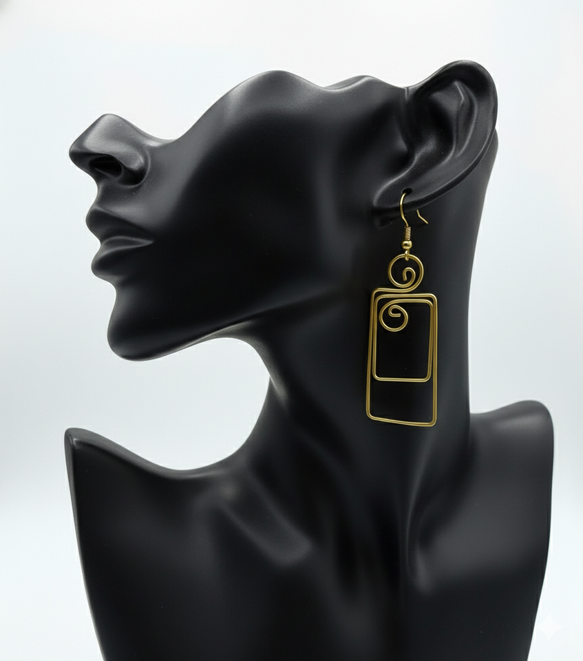 ต่างหูทองเหลืองสุดหรู – ต่างหูทรงสี่เหลี่ยมเรขาคณิตแบบห้อยประดับลวดสีทอง สไตล์โมเดิร์นมินิมอล เครื่องประดับขายส่ง