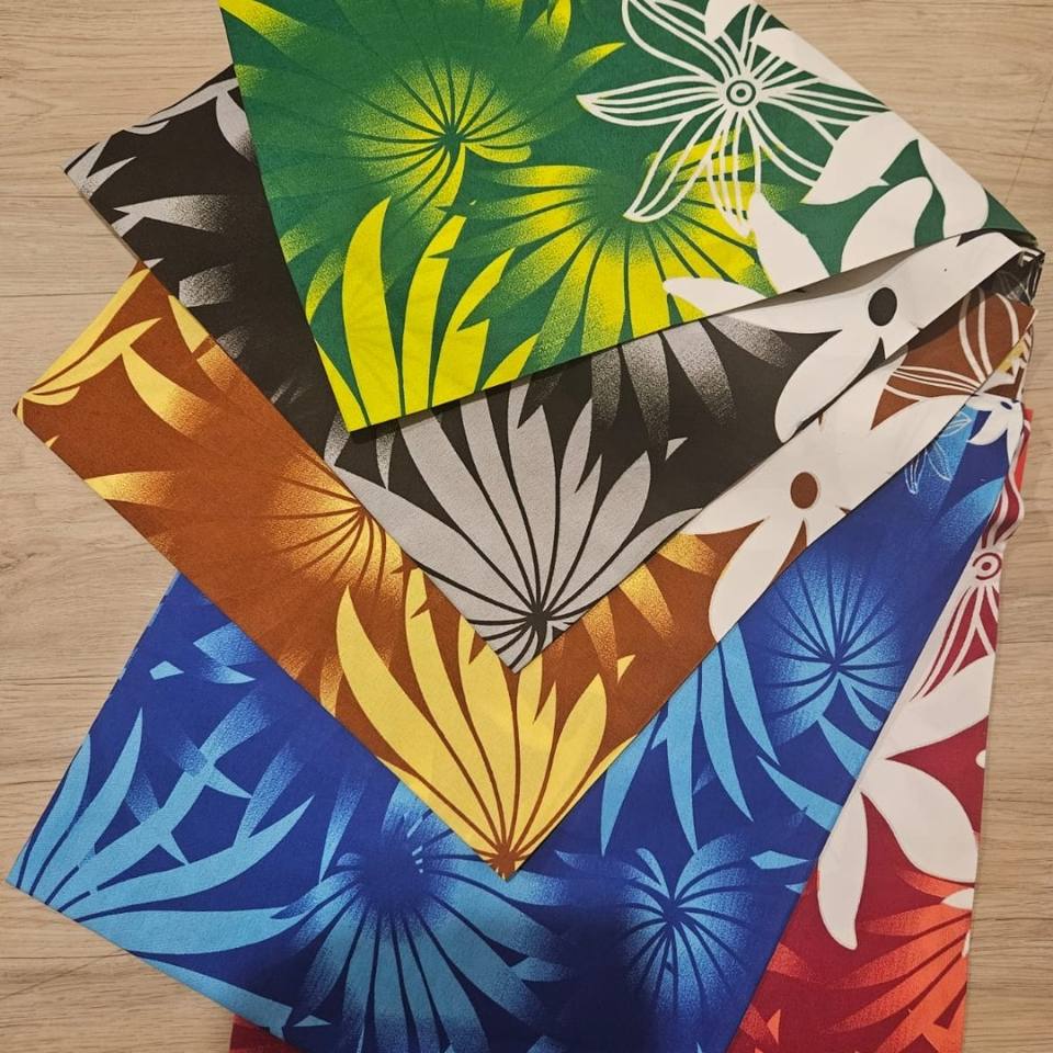 ผ้าฝ้ายโพลีเอสเตอร์หนาและสว่างสดใสน่าทึ่งดีไซน์ฮาวาและโพลีเซียนกว้าง36นิ้วพร้อมส่งทันที
