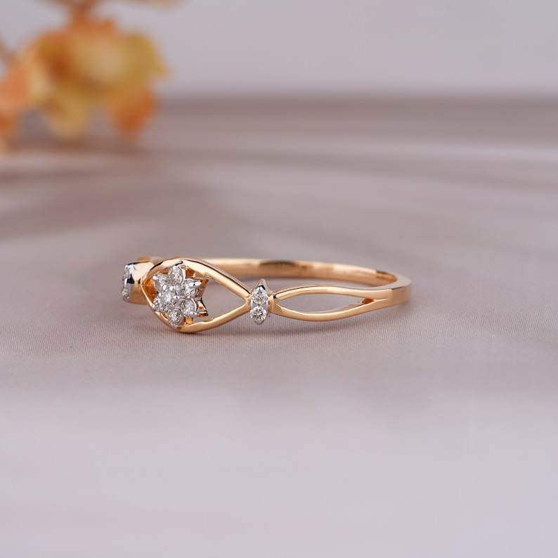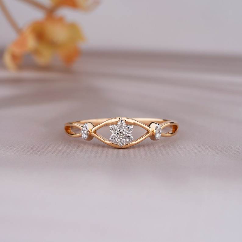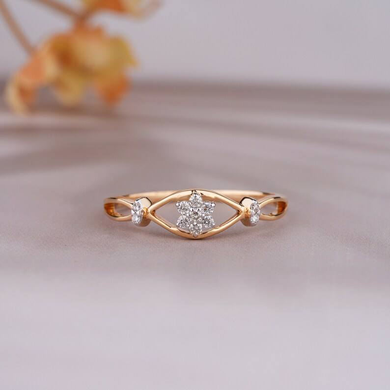 แหวนหมั้นเพชรธรรมชาติทรงกลมสวยงามสวยงาม14K แหวนประดับเพชรสีเหลืองทองแหวนดอกไม้คลัสเตอร์แหวนดอกไม้ของขวัญความรัก