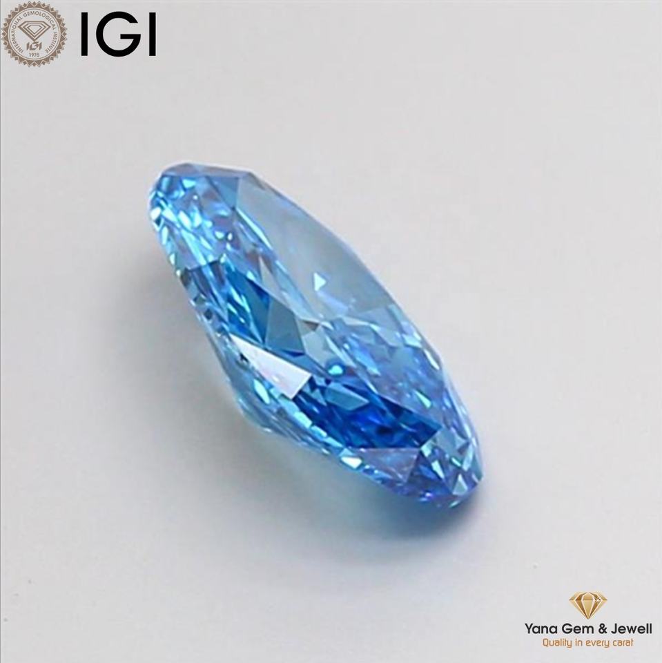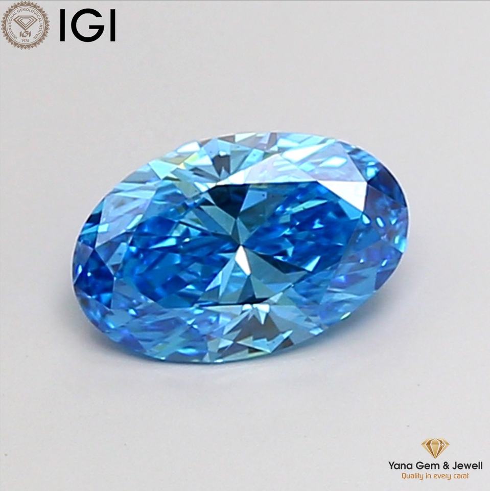 เพชรทรงรีทรงโอวัลสุดหรู ผลิตในห้องปฏิบัติการด้วยเทคนิค CVD พร้อมใบรับรอง IGI น้ำหนัก 1.50 กะรัต สีฟ้าสดใสระดับ Fancy Vivid Blue ความสะอาดระดับ VS2