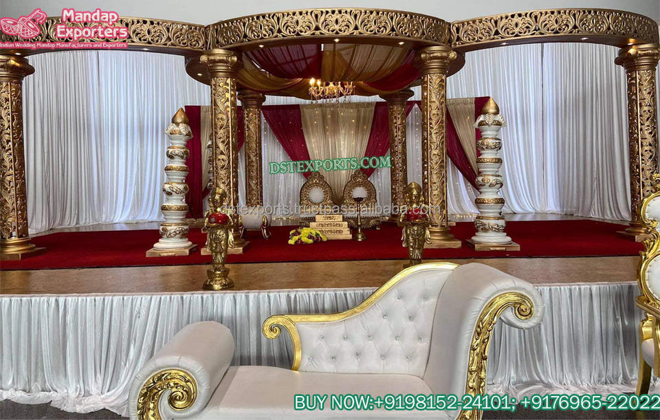 Mandap มงกุฎอันน่าทึ่งสำหรับงานแต่งงานของอินเดียสถานที่จัดงานแต่งงานของศรีลังกา Grand Mandap งานแต่งงานของอินเดียใต้ Mandapam สีทอง