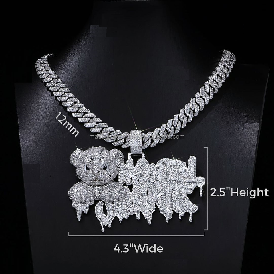 สวยงามออกแบบได้ตามต้องการรูปการ์ตูนพร้อมชื่อจี้เพชร VVS Moissanite เพชรฝังอยู่บน925สีเงินจี้ฮิปฮอป