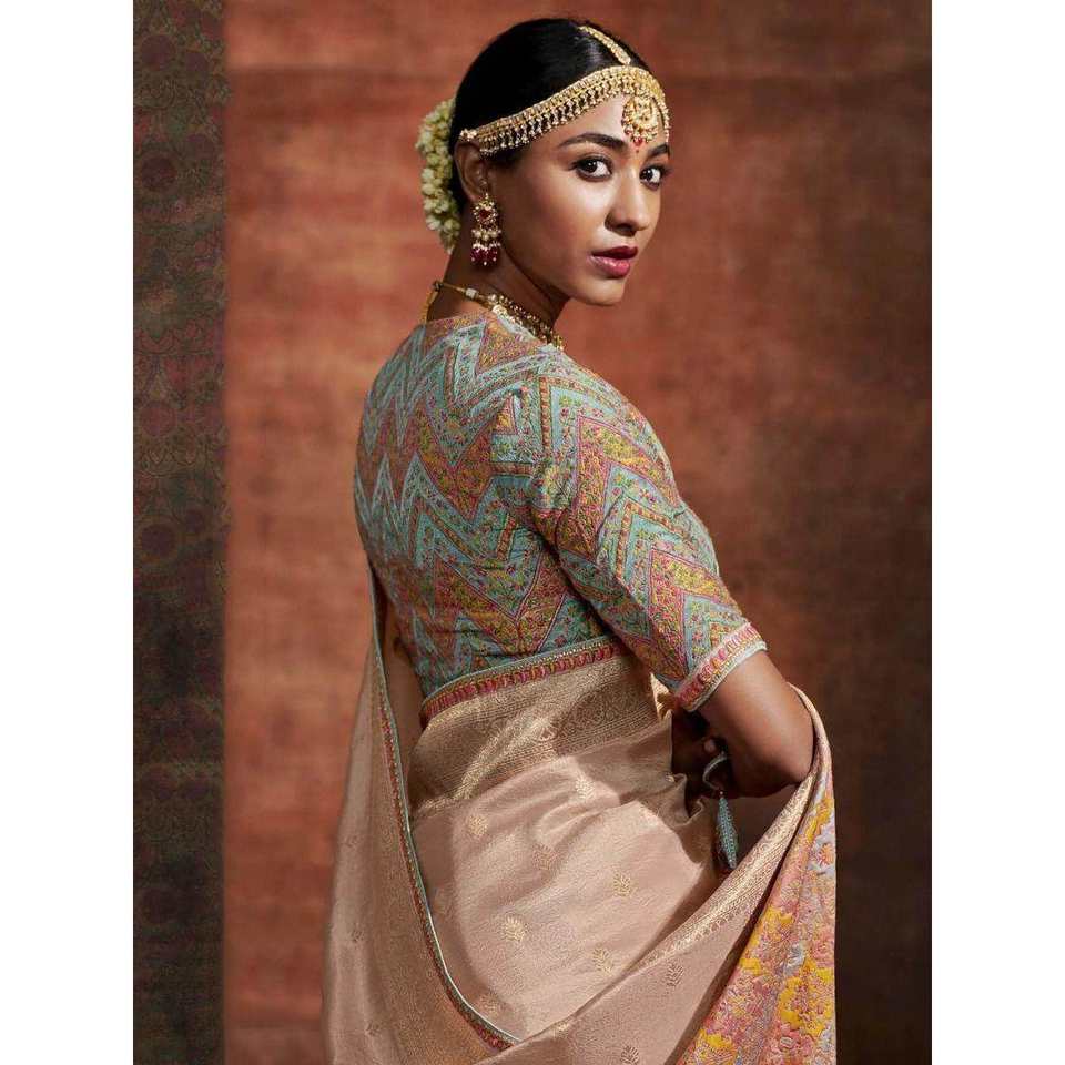 ผ้าไหมโดลาสีชมพูอมเทาที่สวยงามสำหรับชุดราตรี