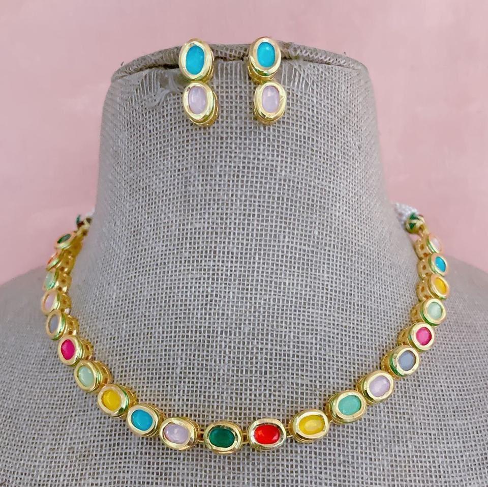 สร้อยคอ Kundan คุณภาพระดับพรีเมียมพร้อมต่างหูสำหรับผู้หญิงเครื่องประดับดีไซเนอร์สำหรับคอลเลกชันงานแต่งงาน