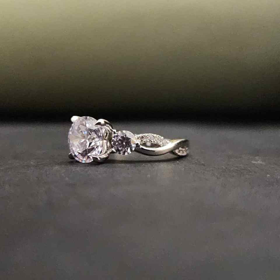 แหวนหมั้นเพชรโมอิสซาไนต์ทรงกลมสามเม็ด ชุบทอง 14K บนตัวเรือนสแตนเลสสตีล ได้รับการรับรองจาก IGI ดีไซน์ทันสมัย สวยงาม สำหรับทั้งชายและหญิง