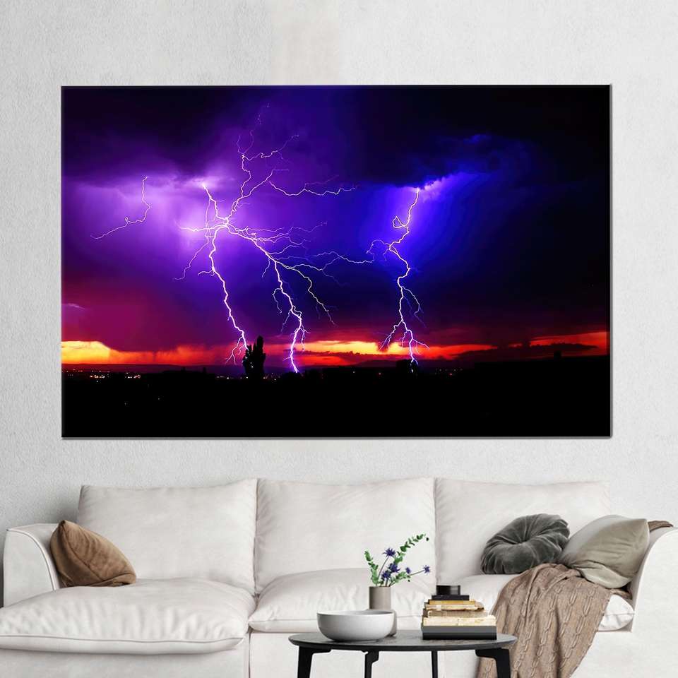 Stunning Lightning Storm Canvas Print - Vibrant Purple Sky Thunder Artwork,1P:Gallery Wrapped