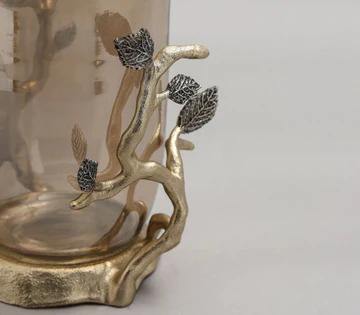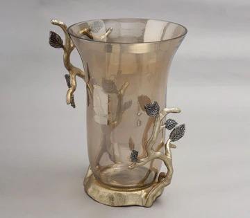 แจกันดอกไม้โลหะสุดสวยพร้อมดีไซน์ลายดอกไม้และกระจกสีทองของตกแต่งบ้านอันหรูหรากลางโต๊ะเหมาะสำหรับห้องนั่งเล่นหรือรับประทานอาหาร