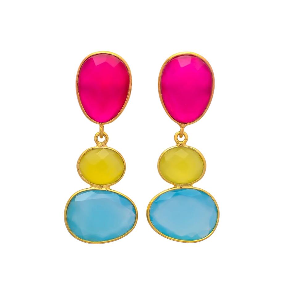 ต่างหูหยดน้ำหินหลากสีที่สวยงามตั้งอยู่ในชุดต่างหูชุบทองสุดหรูและทันสมัยสำหรับเด็กและผู้ใหญ่