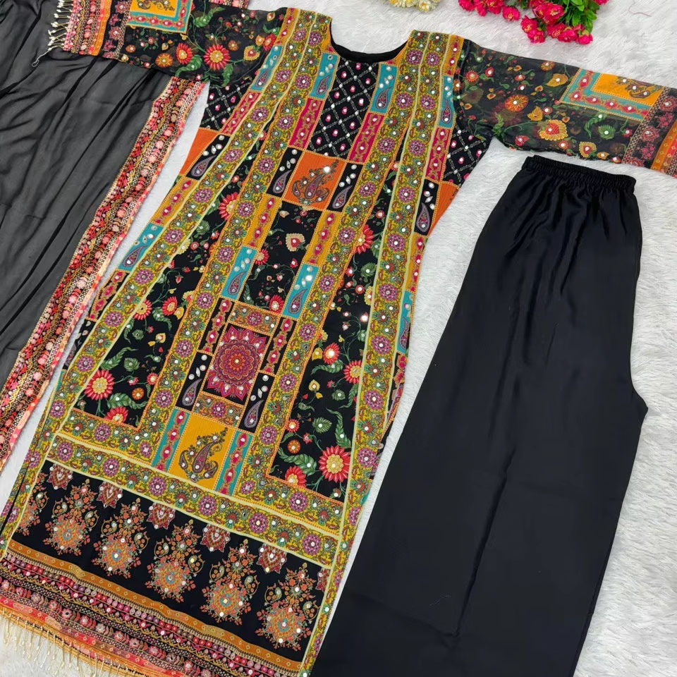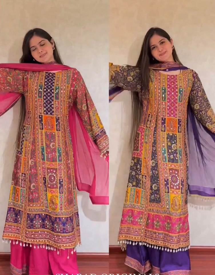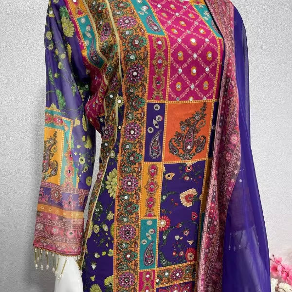 ชุดสูทปากีสถานดีไซน์เนอร์ผ้าจอร์เจียเทียมหนักพิมพ์ลายดิจิทัลและปักงานฝีมือสำหรับงานแต่งงาน