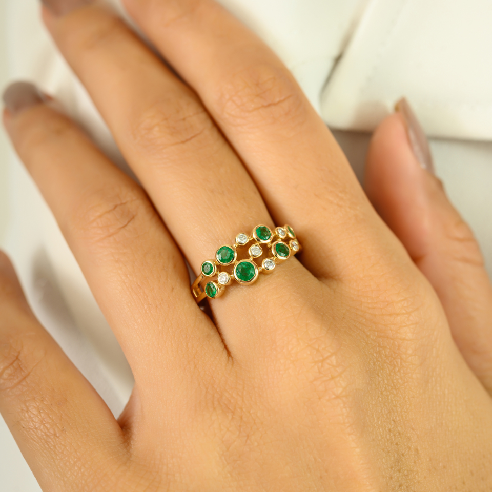 แหวนเพชรและมรกตเจียระไนแบบใหม่สุดอินเทรนด์พร้อมของขวัญวันเกิดสีทอง14K จริงสำหรับผู้หญิง