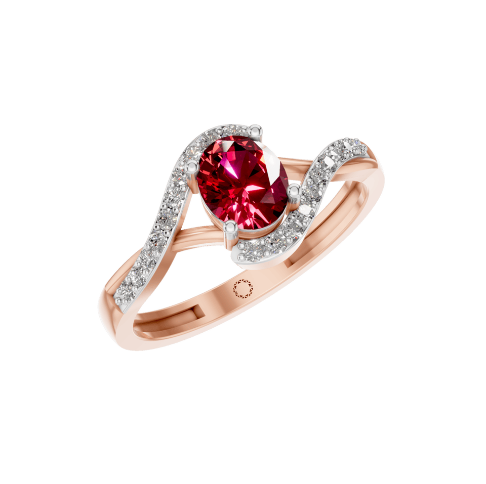 สไตล์:แหวนวงคลื่นดีไซน์หรูหรา ประดับด้วยทับทิมทรงวงรีและเพชร