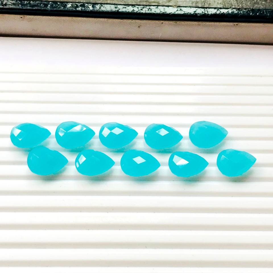 คู่ที่สวยงามของ3มิลลิเมตรหินคาลซิโดนีสีฟ้าธรรมชาติลูกแพร์ตัดแฟนซีหินเหลี่ยมเพชรพลอยหลวม100ชิ้นสั่งขั้นต่ำ