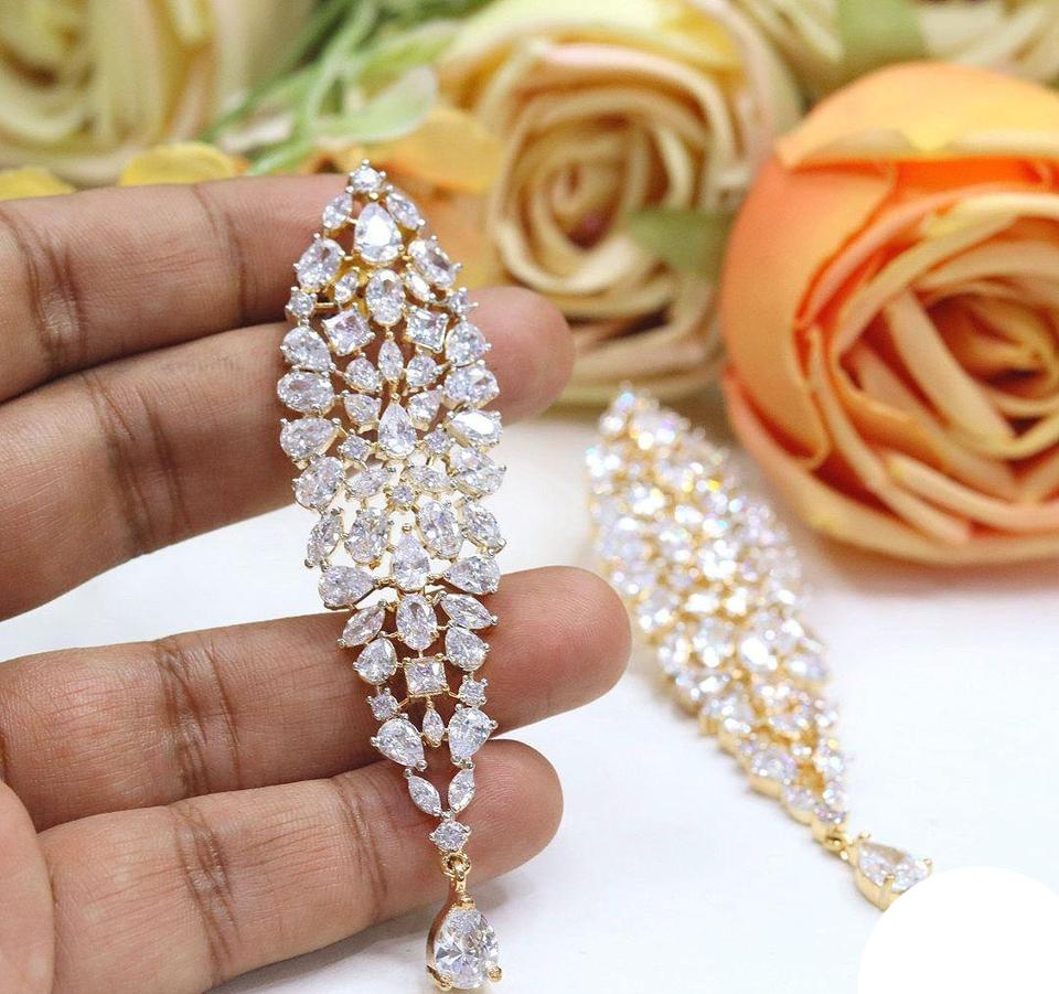 ต่างหูดีไซน์หรูหรา ประดับด้วยเพชร CZ ชุบทองคุณภาพพรีเมียม สวยงามโดดเด่น เหมาะสำหรับงานแต่งงานและงานปาร์ตี้ สำหรับผู้หญิงและเด็กผู้หญิง