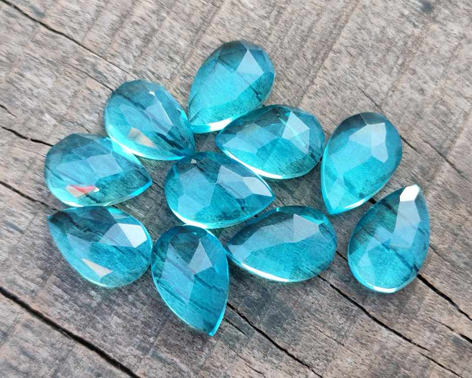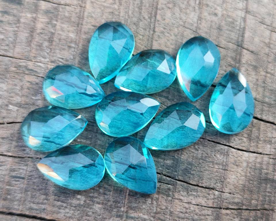 ต่างหูสวิสสีฟ้าบุษราคัมพลอยลูกแพร์ตัดดอกกุหลาบอัญมณีหลวมสำหรับทำ925แข็งเงินสเตอร์ลิง