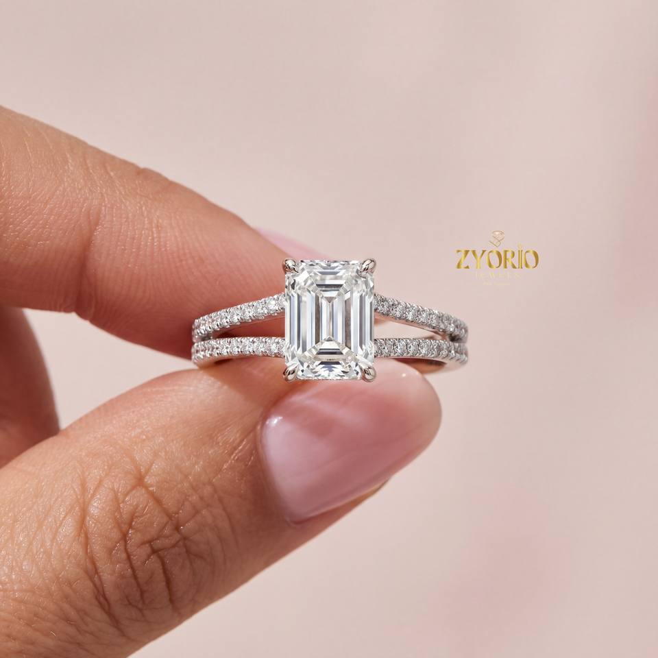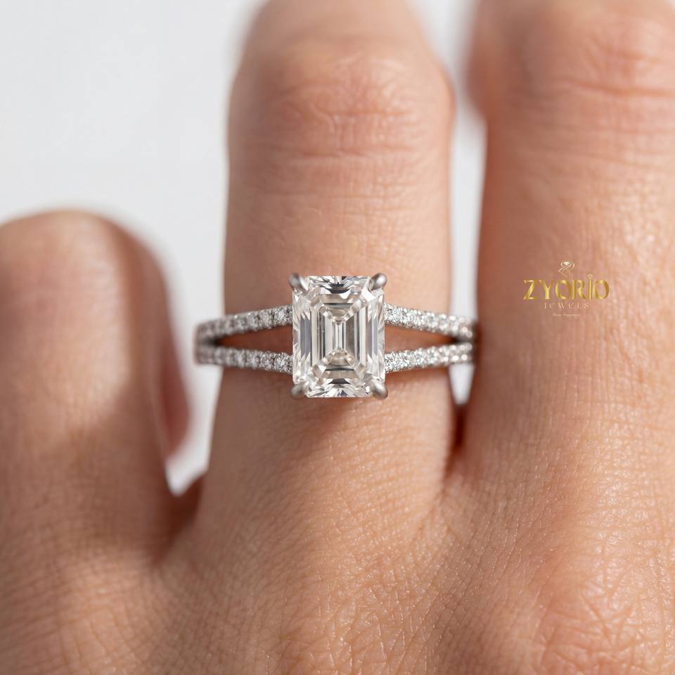 Stunning Lab Grown VS Radiant Cut Diamond Bridal Engagement Ring Hidden Sparkling Accents 14K/18K Gold Plated for Women Party