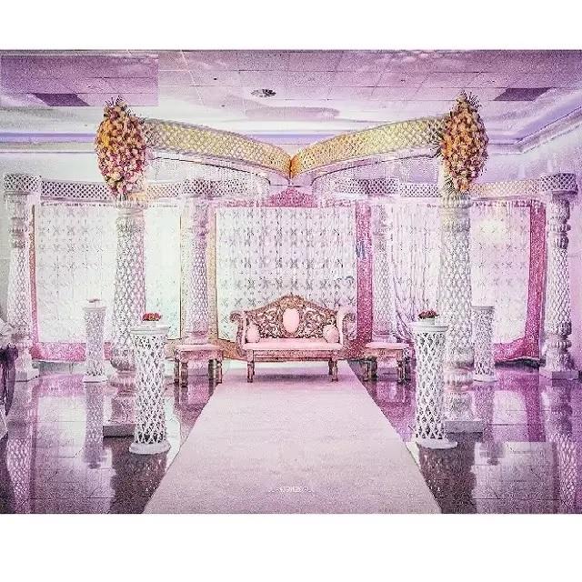ชุดรูปแบบสีชมพูแสนโรแมนติกอันน่าทึ่งสำหรับเวทีงานแต่งงานของชาวอินเดียมีคริสตัลเก็บภาพประดับเพชรรูปผีเสื้อ