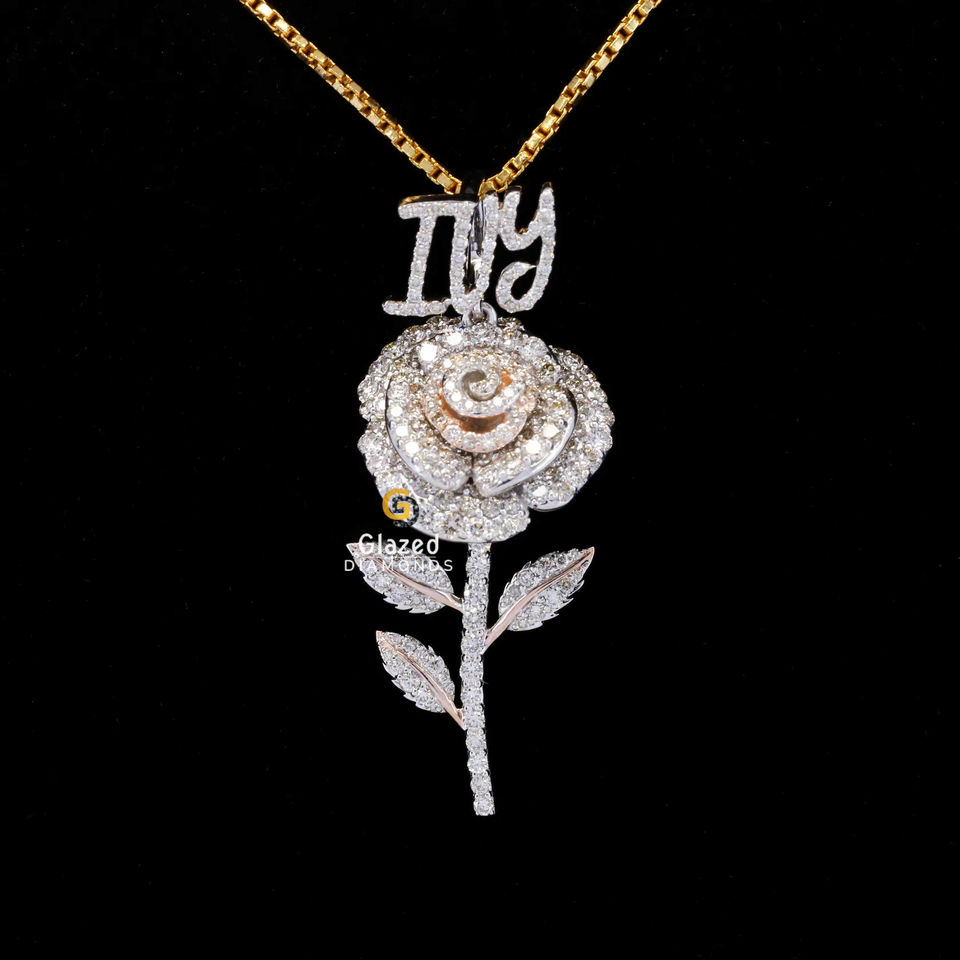 925สีเงินสเตอร์ลิงทรงกลมสวยงามเป็นประกายเป็นประกายมีความคมชัดระดับ VVS จี้ดอกกุหลาบประดับเพชรที่ปลูกในห้องปฏิบัติการ