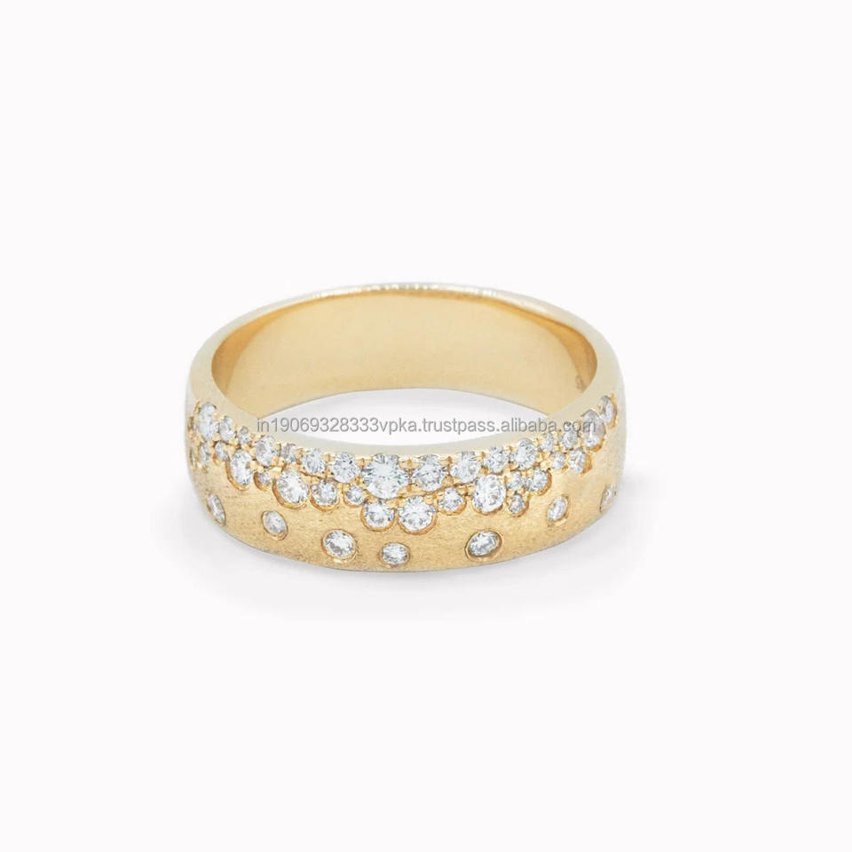 วงแหวนแต่งงานประดับด้วยผ้าซาตินที่สวยงามพร้อมชุดฟลัชประดับเพชรเลียนแบบครึ่งชั่วนิรันดร์วงแหวนซิการ์ทรงกลมโมอิสซาไนต์สำหรับงานแต่งงาน