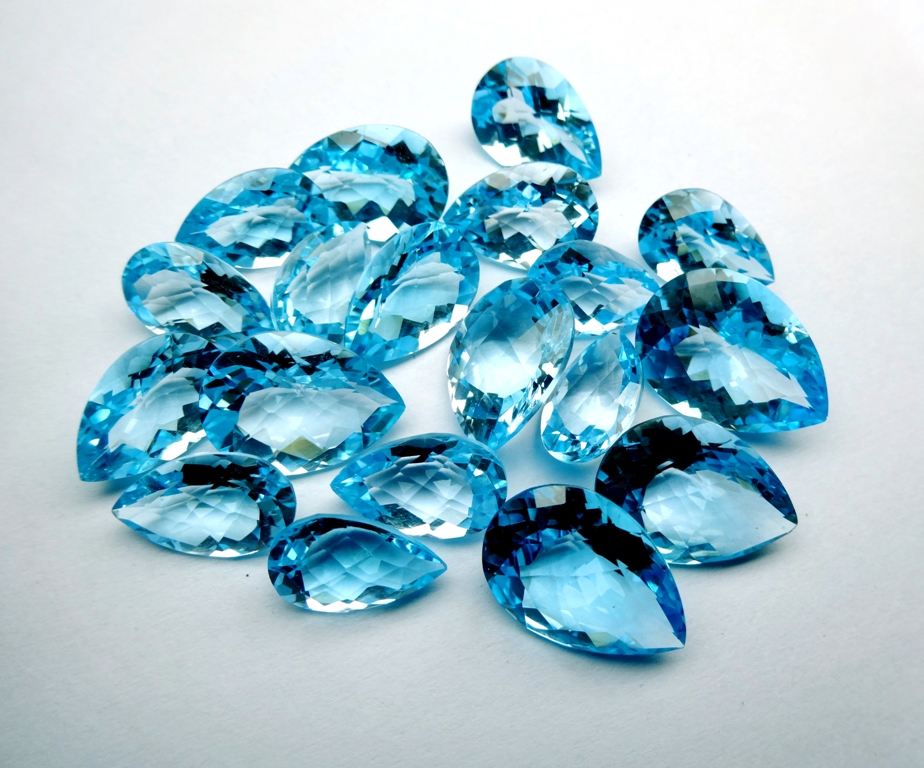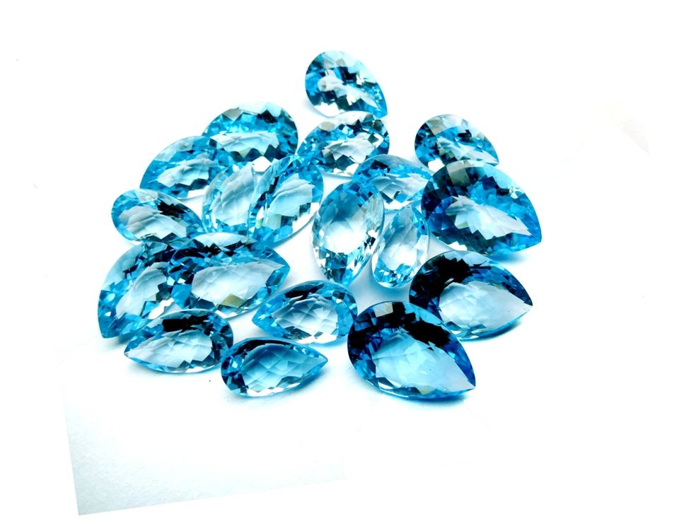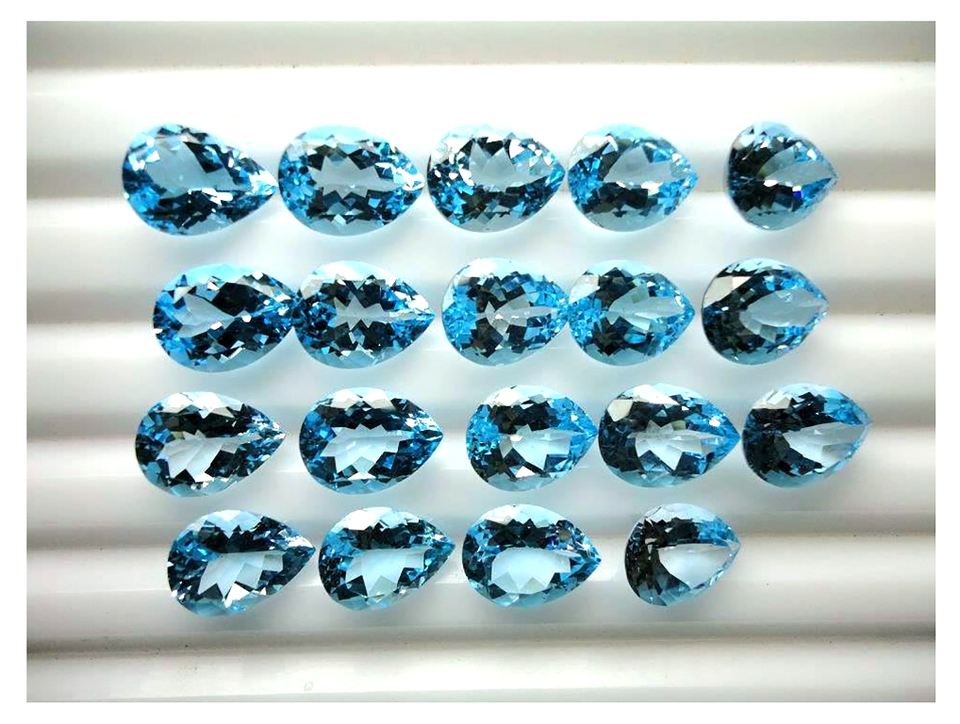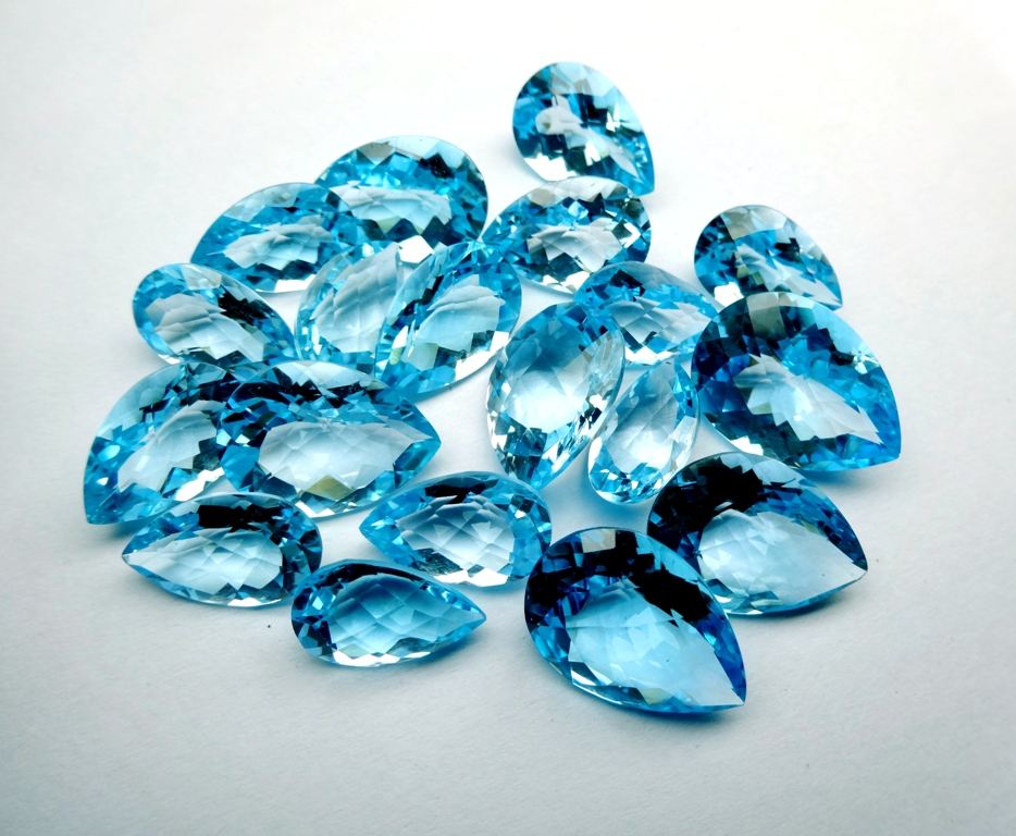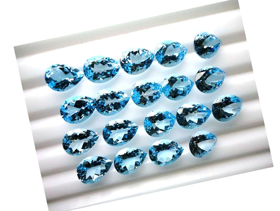พลอยบุษราคัมสีฟ้าที่สวยงามรูปทรงลูกแพร์สำหรับทำเครื่องประดับอัญมณีทรงหลวมมีค่าสอบเทียบขนาดสีน้ำเงินบุษราคัม