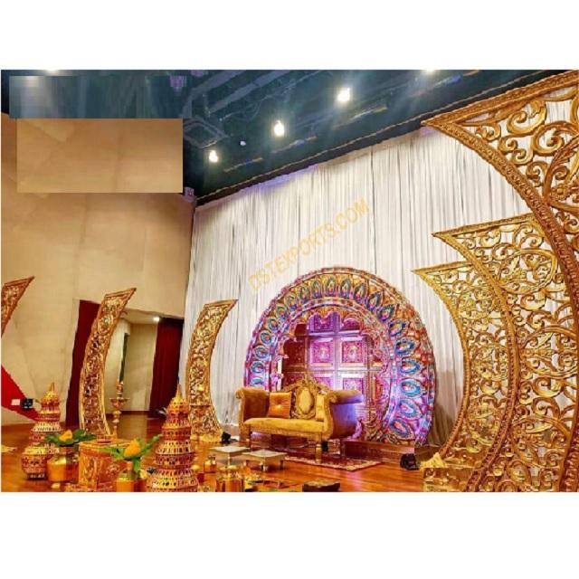 เวทีงานแต่งงานสไตล์อินเดียใต้ที่สวยงาม ตกแต่งเวทีงานแต่งงานแบบอินเดียดั้งเดิม โครงเวทีงานแต่งงานทรง C ที่งดงาม