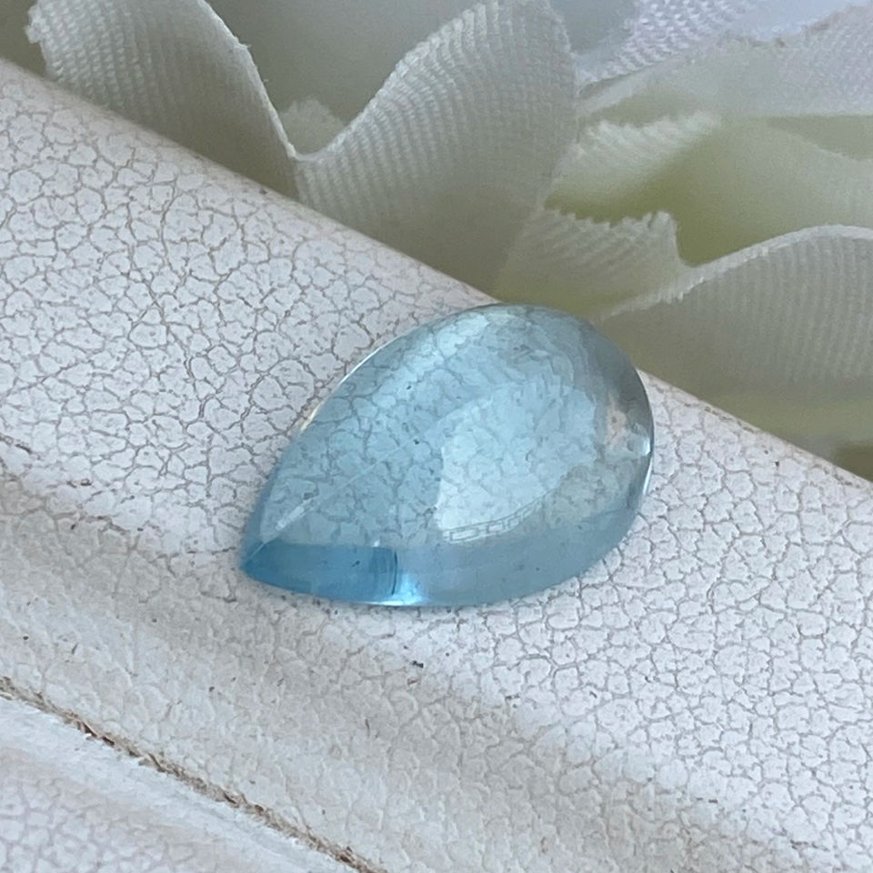 พลอยคาโบชองสีลูกแพร์พลอยอะความารีนแบบหลวมมีความมันวาวสวยงาม2.39กะรัต