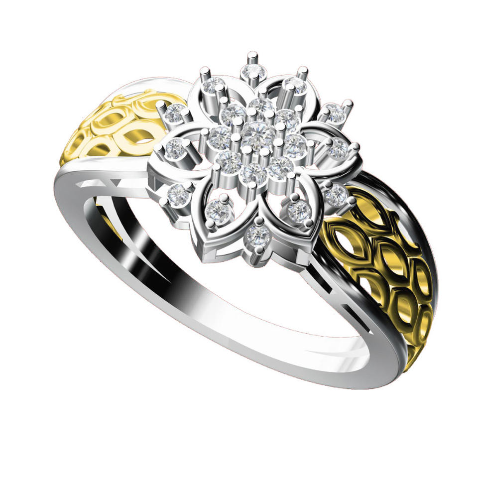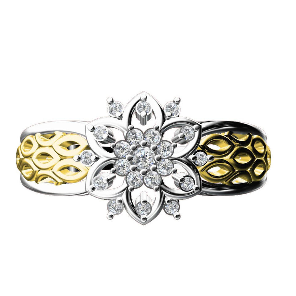 แหวนเพชรทอง14K ที่มีเอกลักษณ์และสวยงามพร้อมกลุ่มเพชรรูปดอกไม้