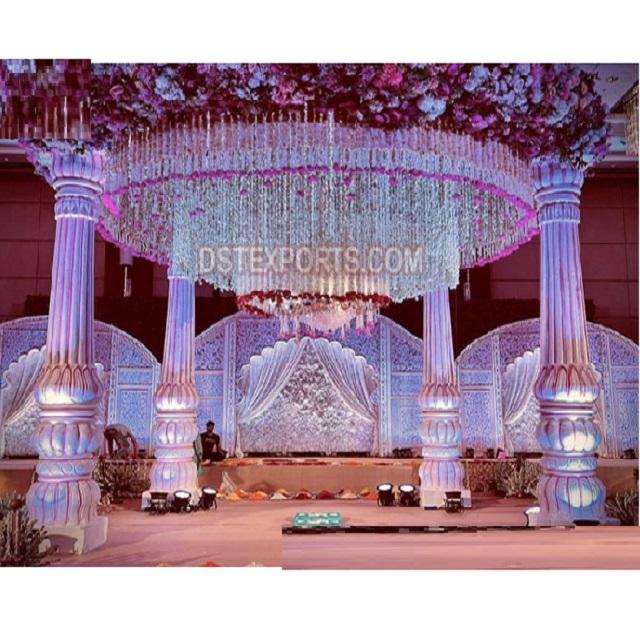 เสาดอกบัวแกะสลักที่สวยงามในงานแต่งงานรูปทรงดอกบัวที่ได้รับความนิยมของตกแต่งดอกไม้งานแต่งที่น่าทึ่ง Mandap USA