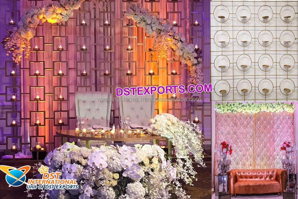 Stunning Wedding Metal Candle Wall Decoration Gold Metal Candle Walls Wedding Stage Decor Trending Wedding Event Candle Wall USA