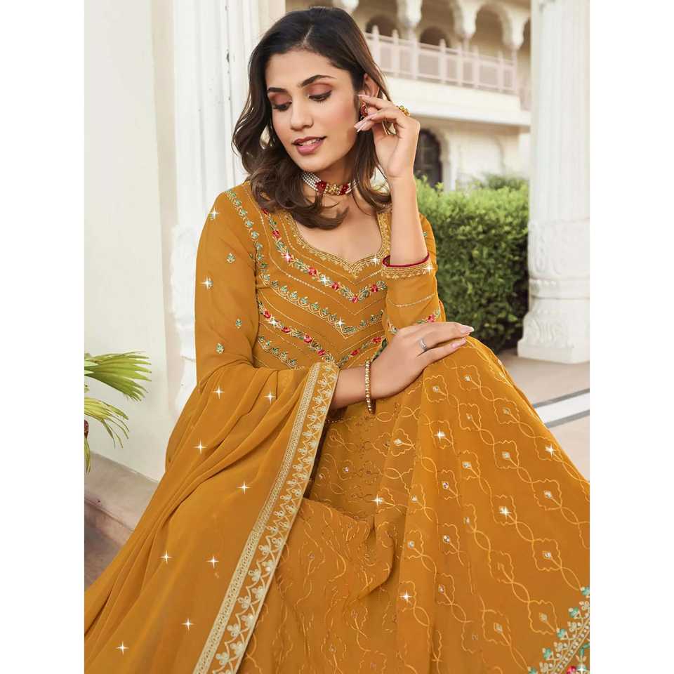 ชุดราตรีผ้าจอร์เจียต์ปักลายสีเหลืองสวยงาม ไซส์ XL ชุดออกงานประดับเลื่อมลาย 3 มิติ สำหรับงานเลี้ยงตอนเย็น