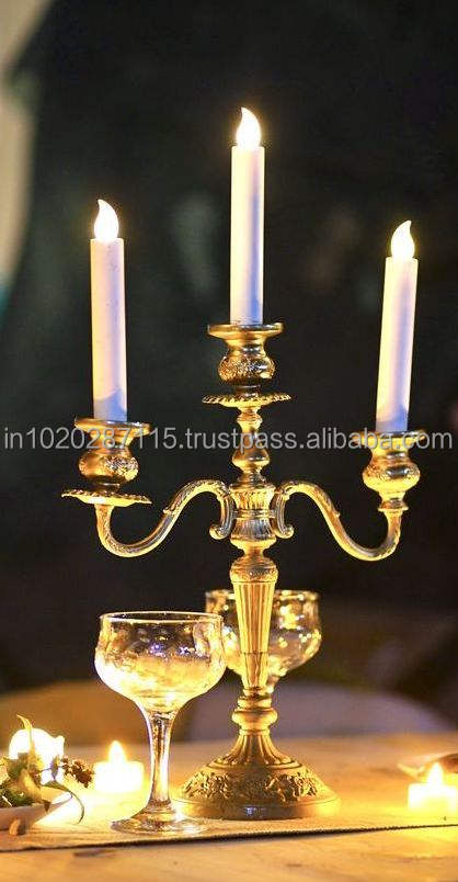 เชิงเทียนทองเหลืองที่สวยงามพร้อมแขนสูงสำหรับแท่นบูชางานแต่งของโบสถ์และงานอีเวนต์แนววินเทจคลาสสิก