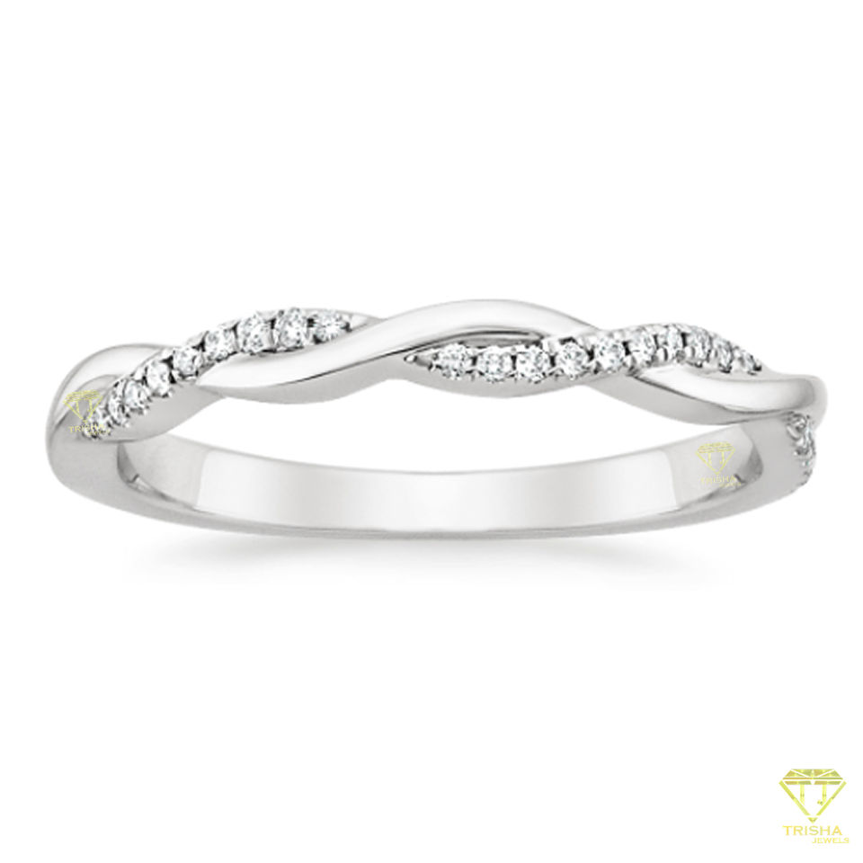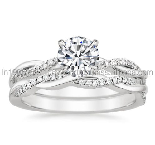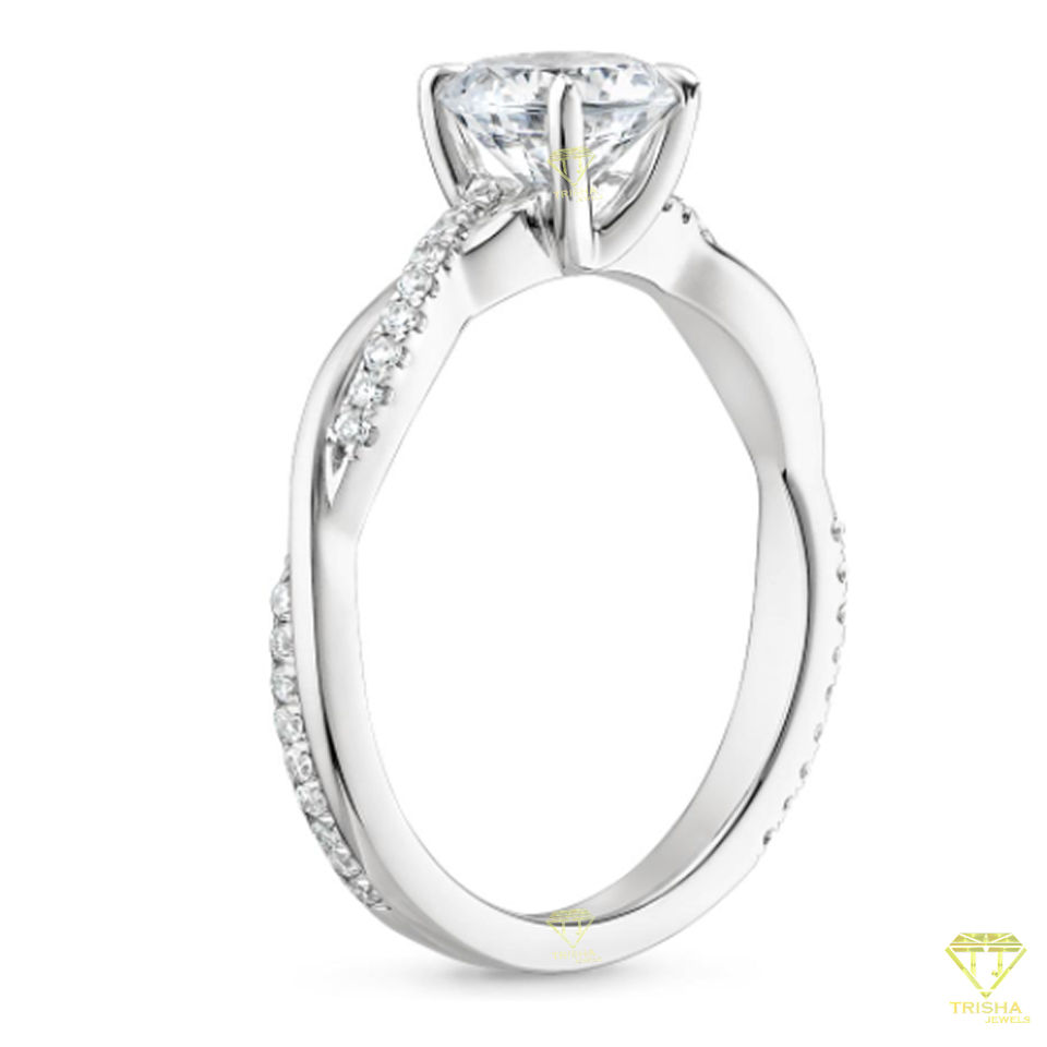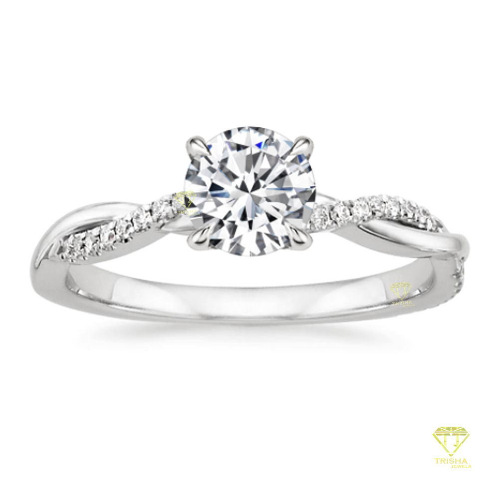 แหวนหมั้นเพชรโมอิสทรงกลมที่สวยงามพร้อมด้วยสายบิดคลาสสิกประกายตรงกับการออกแบบที่หรูหราทันสมัย