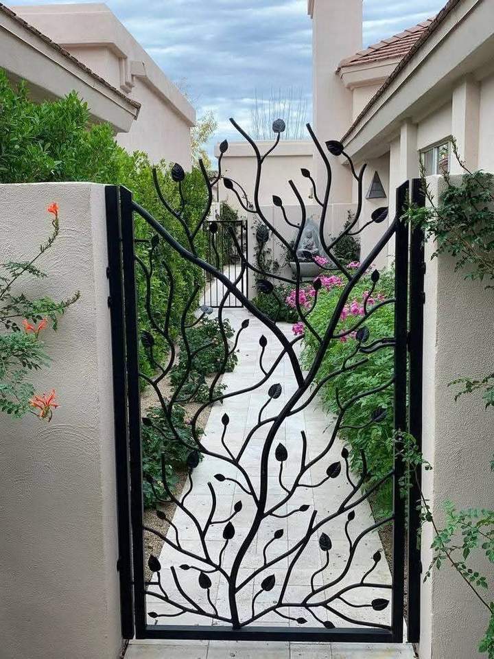 ประตูเหล็กดัดแข็งแรงป้องกันสนิมสำหรับทางเดินในสวนกระท่อม