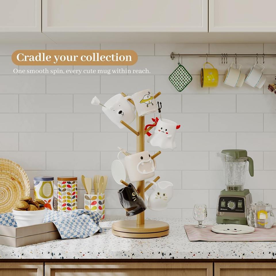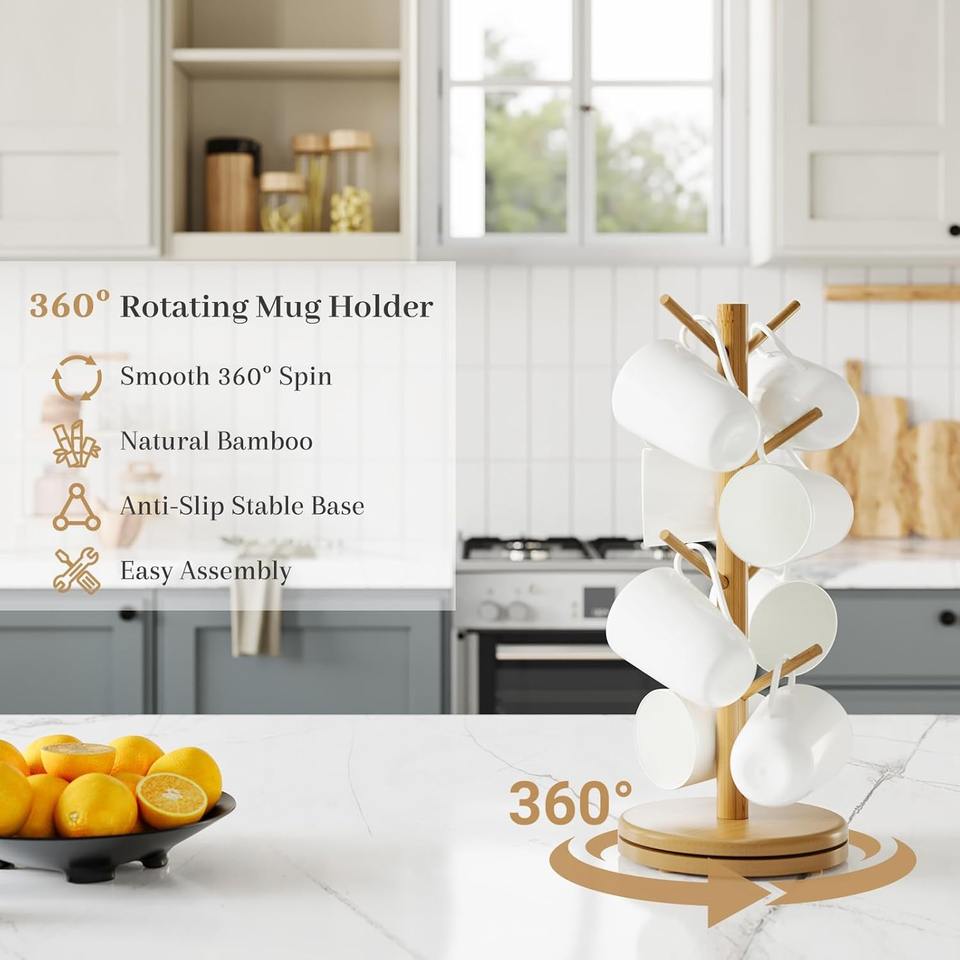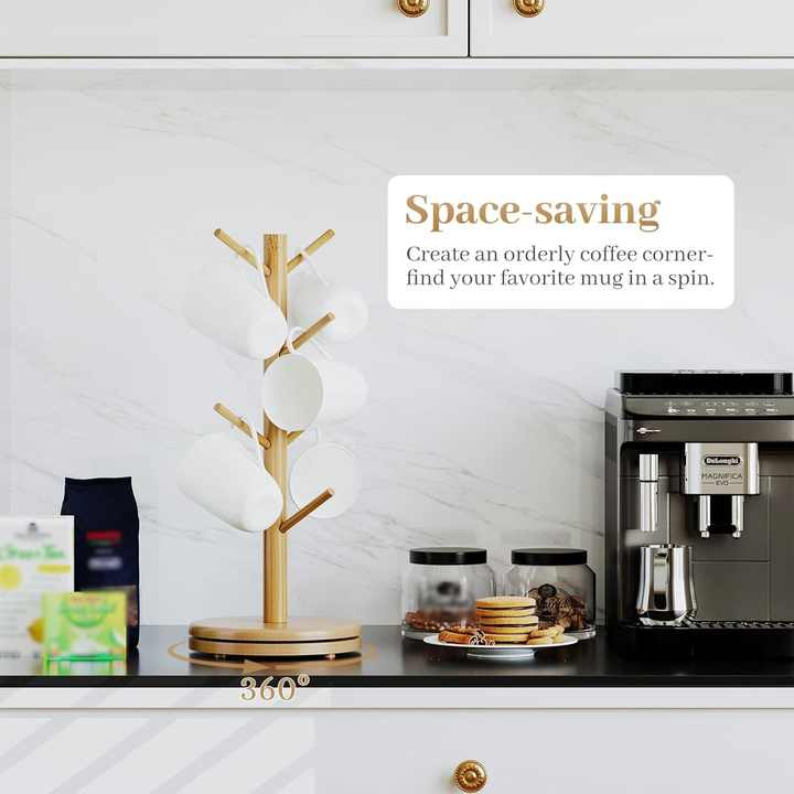 ที่วางแก้วขนาดใหญ่แบบมั่นคง ไม้ไผ่กันลื่น ฐานหนา หมุนได้ สำหรับวางแก้วกาแฟบนเคาน์เตอร์
