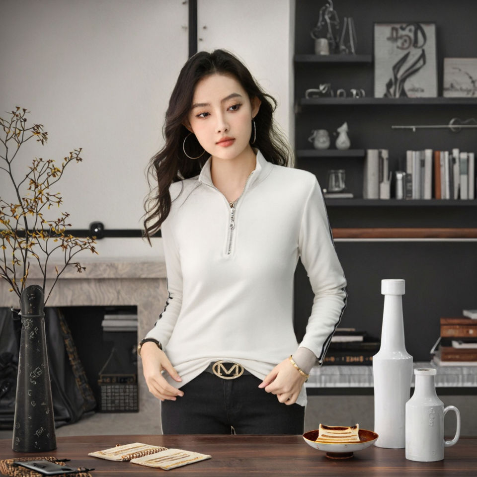 เสื้อขนแกะสองด้านสไตล์แขนยาวครึ่งซิปใหม่ฤดูใบไม้ผลิฤดูใบไม้ร่วง