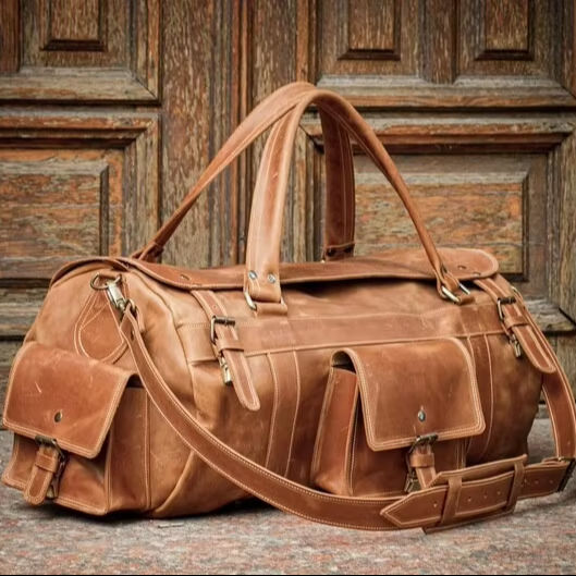 กระเป๋าเดินทางหนังแท้สไตล์เรโทร ดัฟเฟิลวีคเอนเดอร์ ขนาดใหญ่ น้ำหนักเบา มีซิป พกพาสะดวก สำหรับการเดินทางบ่อยๆ