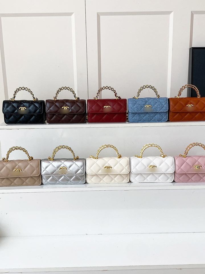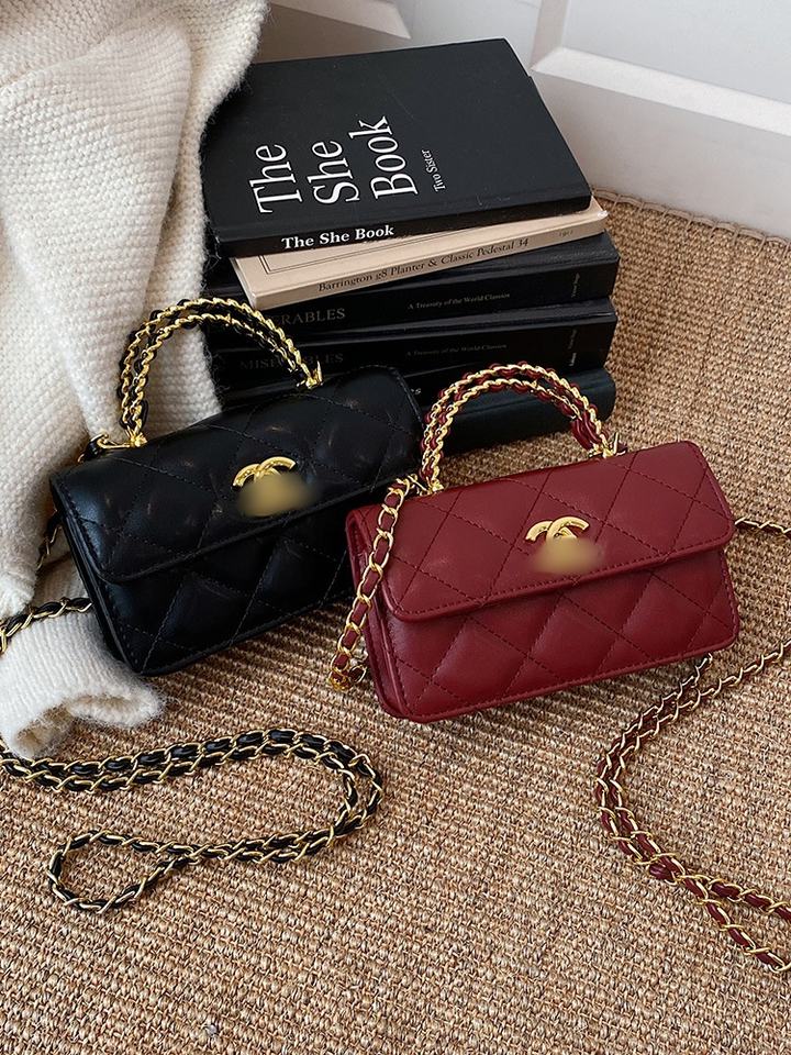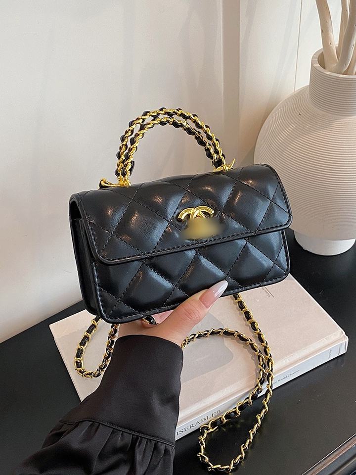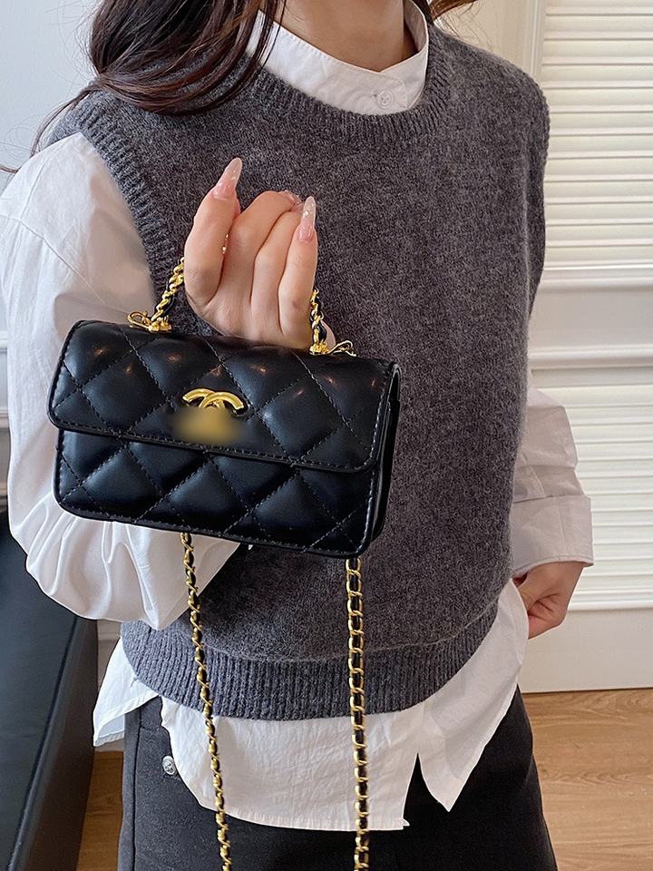 กระเป๋าสะพายไหล่ทรงสี่เหลี่ยมเล็ก ดีไซน์หรูหรา ประดับเพชร สายโซ่ วัสดุ PU พร้อมตัวล็อค แฟชั่นนำเข้า