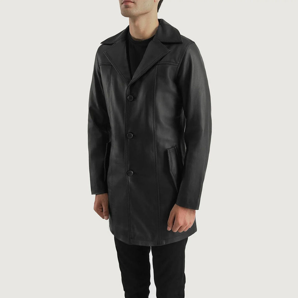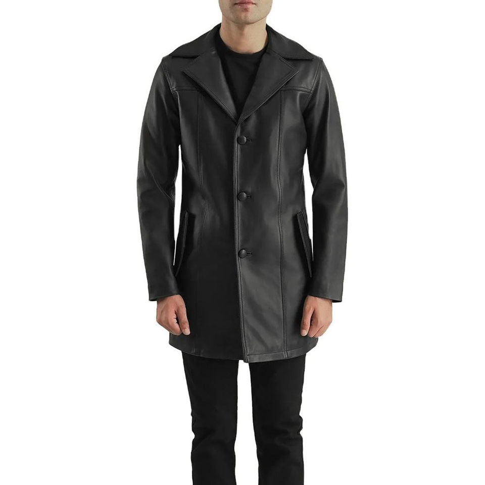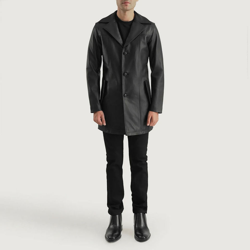 เสื้อโค้ทหนังแท้ทรงยาวสไตล์นีโอเมทริกซ์ สีน้ำตาลแทน สำหรับผู้ชาย พร้อมบริการสั่งตัดเย็บเฉพาะตัว