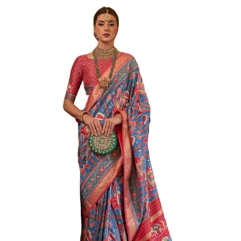 ผ้าไหมพิมพ์ฟอยล์คอลเลกชันชุดปาร์ตี้ส่าหรีสำหรับผู้หญิงสไตล์ p.v