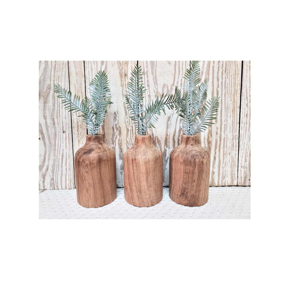 แจกันดอกไม้ไม้เนื้อแข็งสไตล์แจกันตกแต่งห้องนั่งเล่นดอกไม้3ขวดรูปทรงไม้มะม่วงสีตัวอย่างฟรี