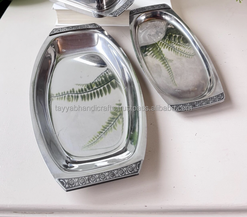 ถาดเสิร์ฟสแตนเลสโลหะทรงรีสำหรับเก็บเครื่องประดับจานอาหารสำหรับตกแต่ง