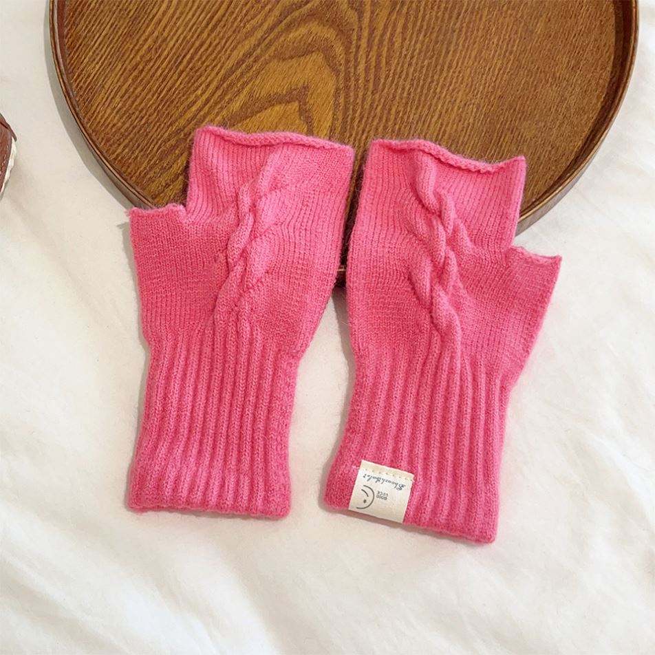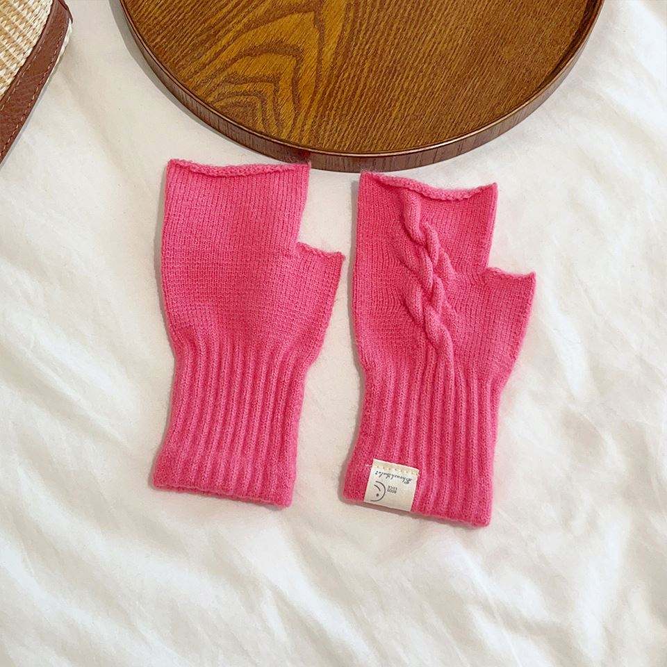 ถุงมือถักนิตติ้งแบบมีสไตล์สำหรับผู้หญิงปกป้องแบบเย็นให้ความอุ่นนักเรียนเขียนได้ครึ่งนิ้ว