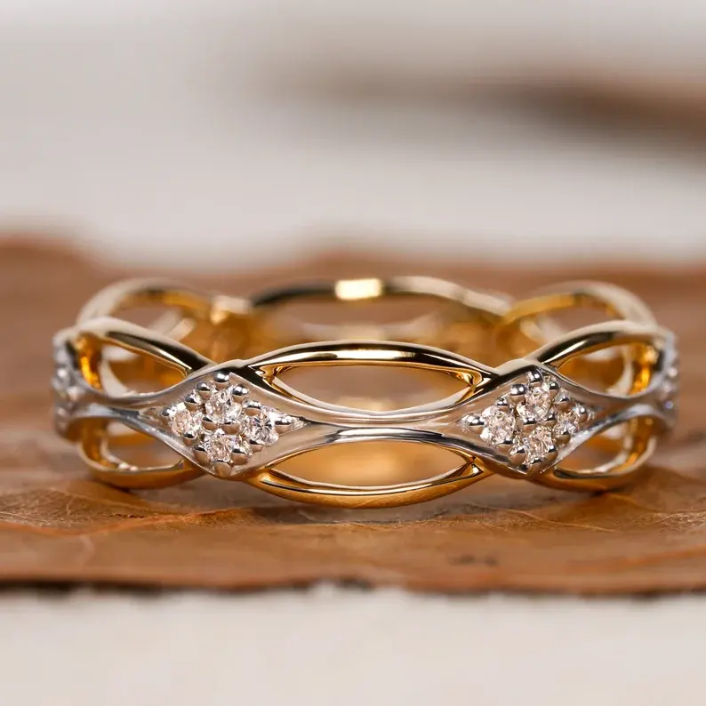 แหวนแต่งงานสไตล์โมอิสซาไนต์สีใสทรงเหลี่ยม คอลเลคชั่นแหวนทองคำแท้สุดหรู